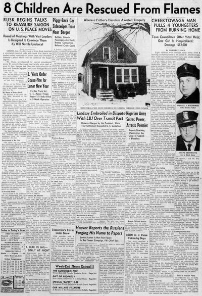 February 8, 1933-The single-family residence of Michael Windral sustained $3,500 in damages after a fire believed to be caused by electrical wiring. (2/9/33-Buffalo Evening News)