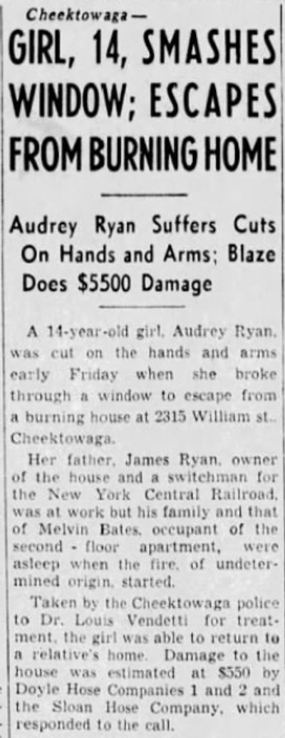 January 16, 1936-A fire was discovered by Cheektowaga Police Officer Louis Kozlowski at a home on South Union Road. The Home was destroyed causing an estimated $7,000 in damages. (1/16/36-Buffalo News)
