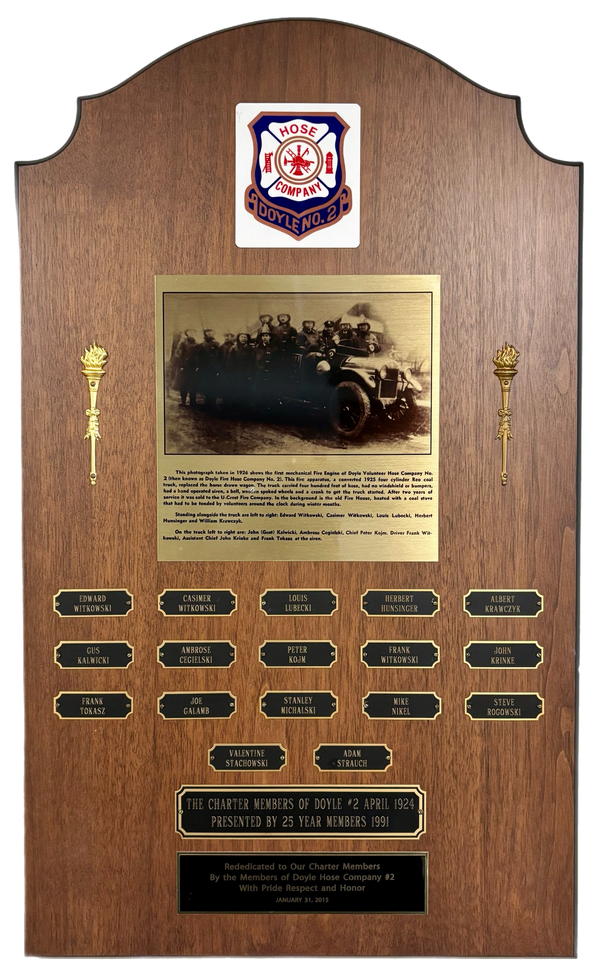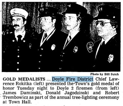 April 10, 1924-Doyle Hose Company No. 2 was founded with the following men joining: Peter Kojm, Stephen Rogowski, Gust Kalwicki, and Joseph Galamb, Albert Krawczyk, Ambrose Cegielski, Adam Strauch, Michael Nikel, Stanley Michalski, Herbert Hunsinger, Louis Lubecki, Valentine Stachowski, John Krinke, Frank Tokasz, Frank Witkowski, Casimir Witkowski and Edward Witkowski.